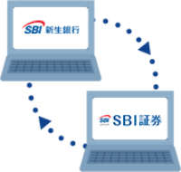 SBI新生銀行口座から、無料で即時にSBI証券口座へ入金したり、SBI証券の預り金からSBI新生銀行口座に出金が無料でできるサービスです。