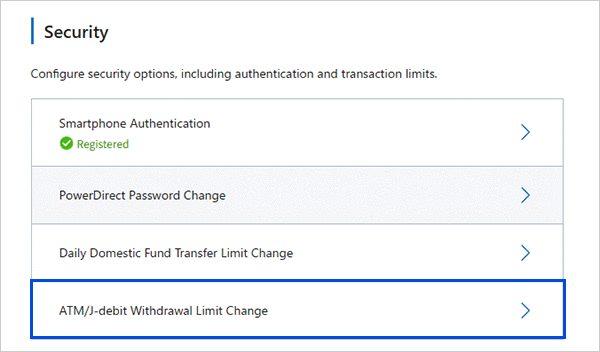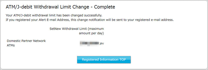 Enter the new daily withdrawal limit (maximum amount per day) for Domestic Partner Network ATMs and click "Change Limits".