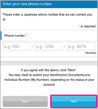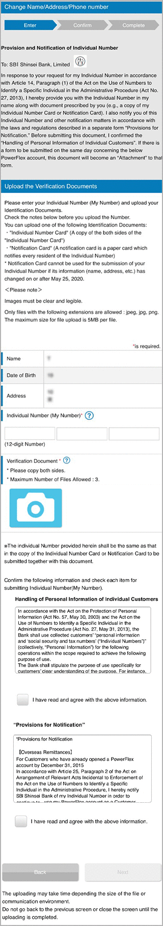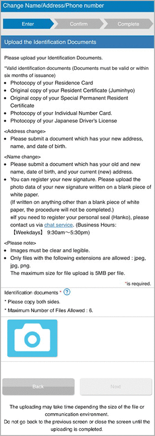 You may need to submit your Identification Documents and Individual Number (My Number), depending on the status of your account and contents of update information.