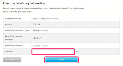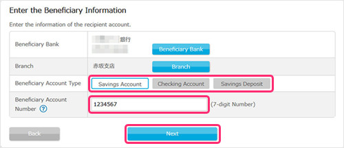 Enter the 7-digitBeneficiary Account Number(If the account number is 6 digits, please put 0 on the front.