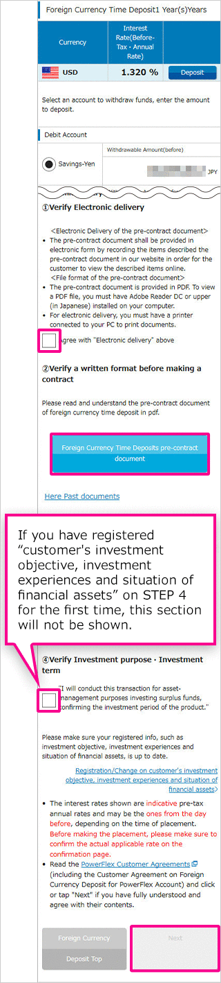You cannot proceed without reading "Foreign Currency Time Deposits pre-contract document".