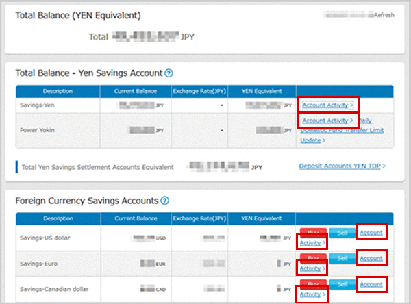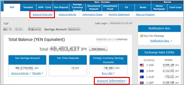If you would like to check the transaction details, please select"Account Overview"or"Account Information".