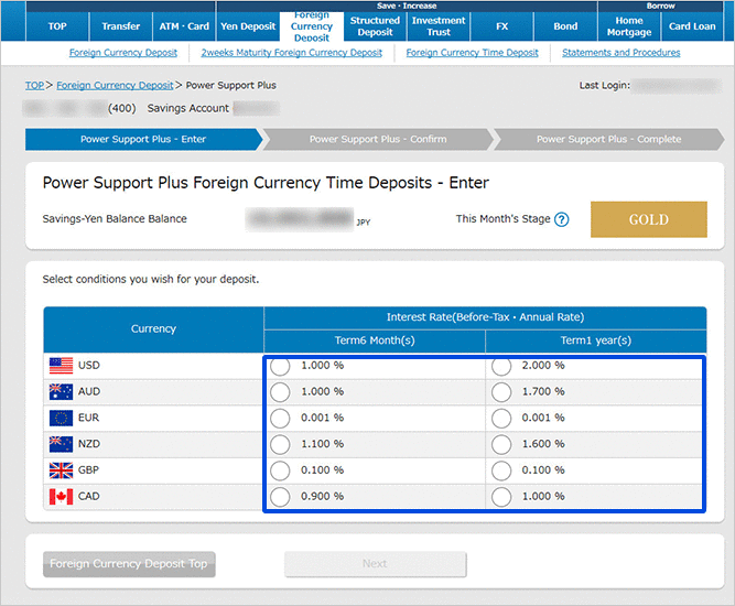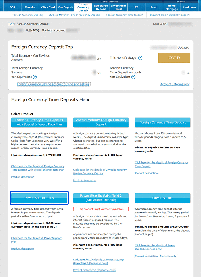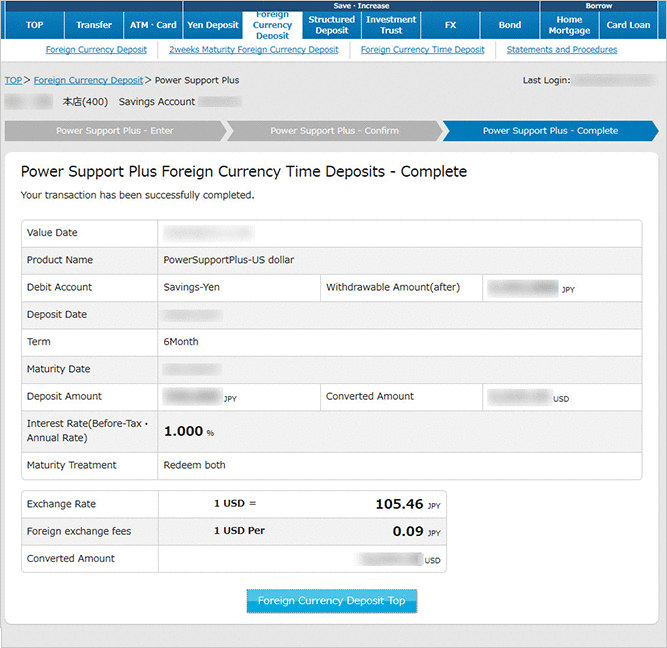 How to make a Power Support Plus Foreign Currency Time Deposit