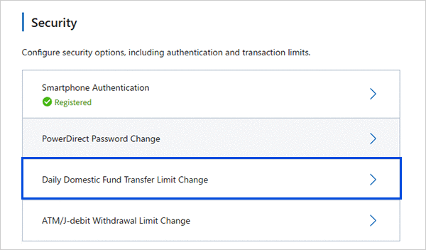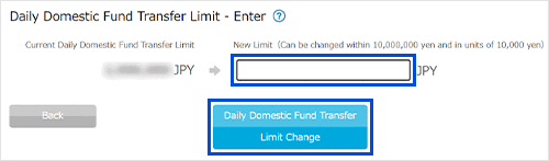 Enter new daily domestic Fund Transfer limit and click"Daily Domestic Fund Transfer Limit Change".