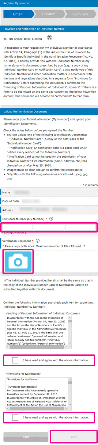 Enter your 12-digit individual number ("My Number") in the three boxes below, four