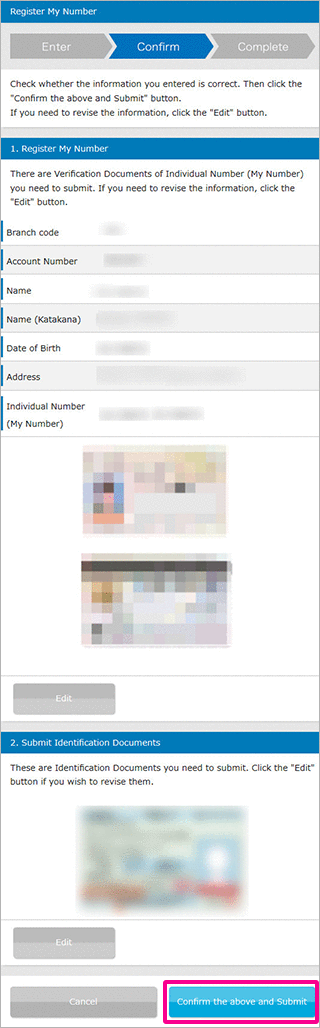 and when the Bank is in the middle of processing your My Number submitted.