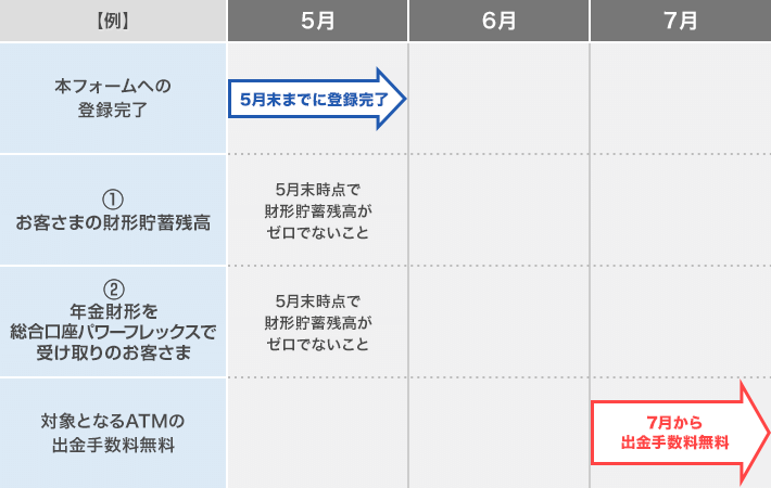 2023年2月6日より、SBI新生銀行の財形貯蓄の加入者さまで総合口座パワーフレックスをお持ちのお客さまへのATM出金手数料の優遇は、お客さまの総合口座パワーフレックスのステージに応じたATM出金手数料に統合させていただきます。2023年2月6日以降は財形貯蓄の加入者さま専用の登録フォームからのエントリーは不要になります。詳しくはこちらをご覧ください。