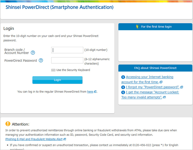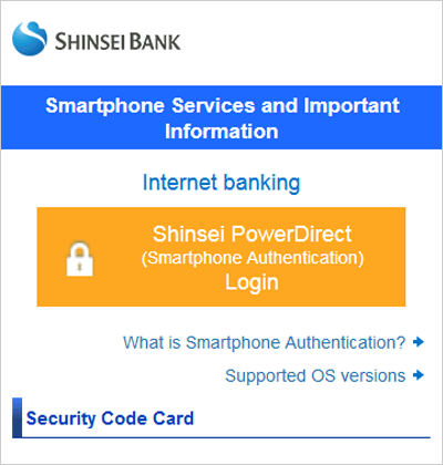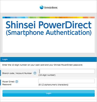 - Please click herefor the details of Shinsei PowerDirect (Smartphone Authentication) .