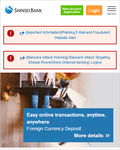 The previous Shinsei PowerDirect is no longer available due to the expansion of Shinsei PowerDirect (Smartphone Authentication) services.