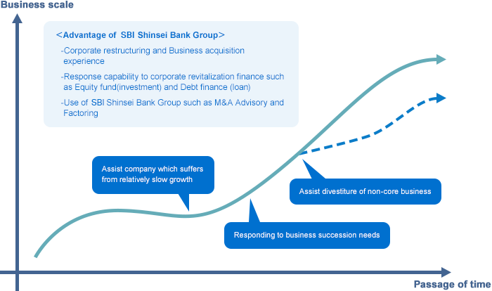 SBI Shinsei Bank provides support to growth oriented customers that find themselves in need of changing their business activities or developing business overseas in response to changes to industrial structures or the external environment. The Bank, through the provision of finance, management support on planning and hiring , and advisory service aimed at resolving management challenges, looks to contribute to maximizing the growth of our customers.