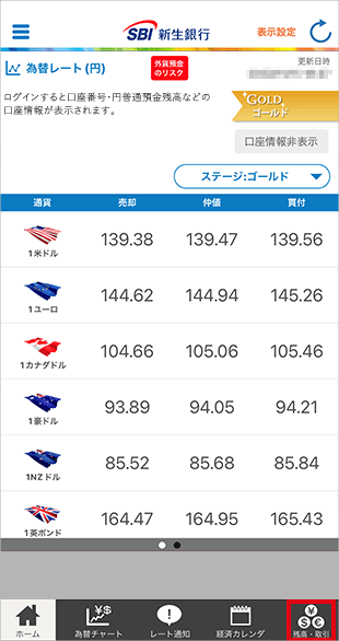 - ここでは「残高・取引」で外貨普通預金をお取引する方法をご説明いたしますが、外貨普通預金のお取引は為替チャートの画面からもご利用いただけます。