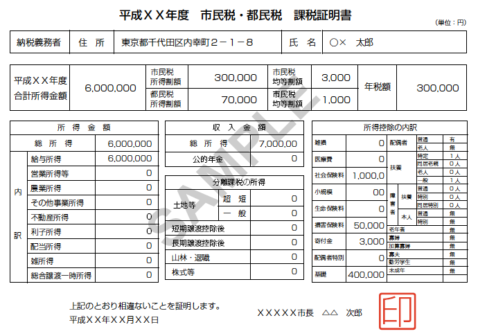 <住民税の課税証明書>