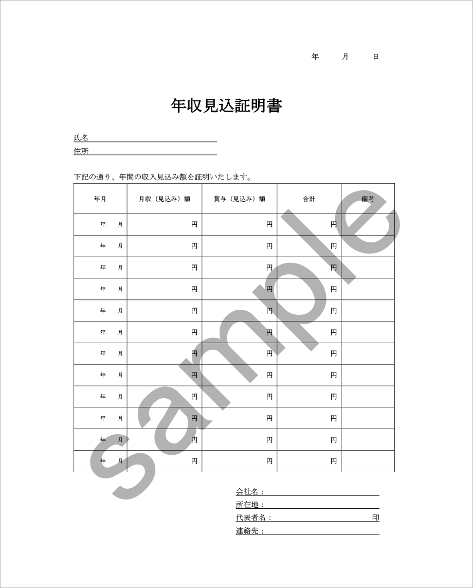 | 年収見込証明書 |