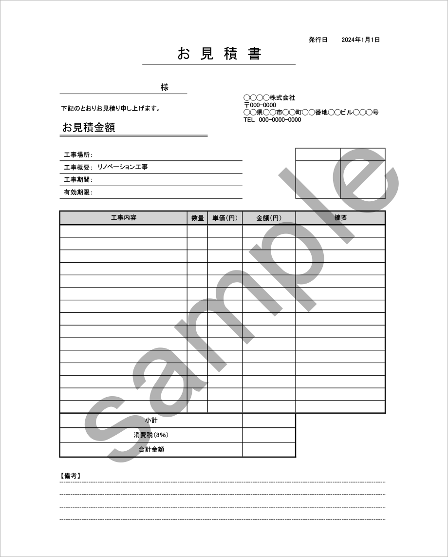 | リフォーム見積書 |