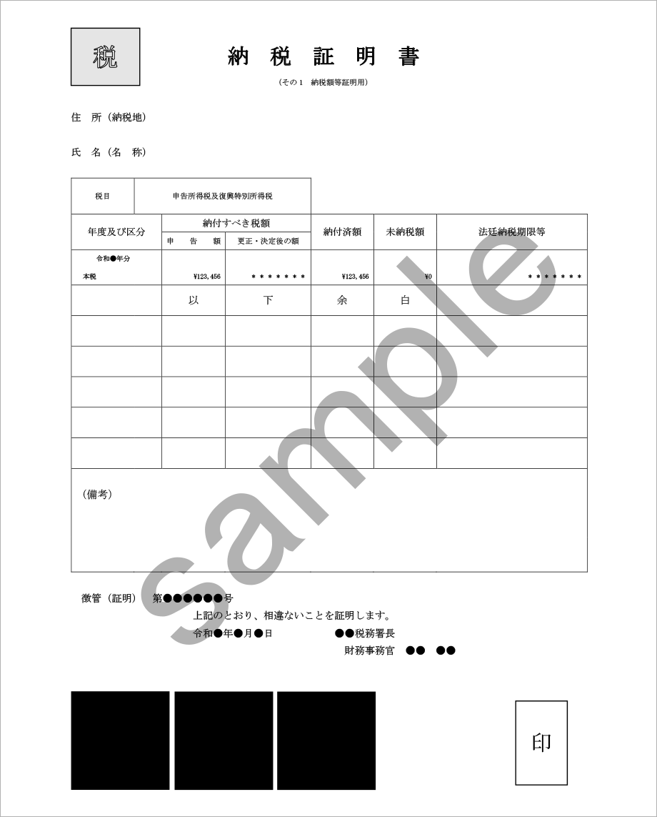 直近1年分をご提出ください。 <所得税の納税証明書 その1>