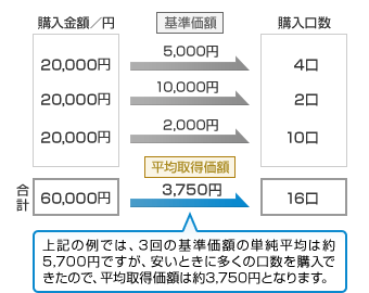 (2)基準価額が高い時は口数を少なく、安い時は口数を多く購入できるので、平均取得価額を引き下げる効果が期待できます。