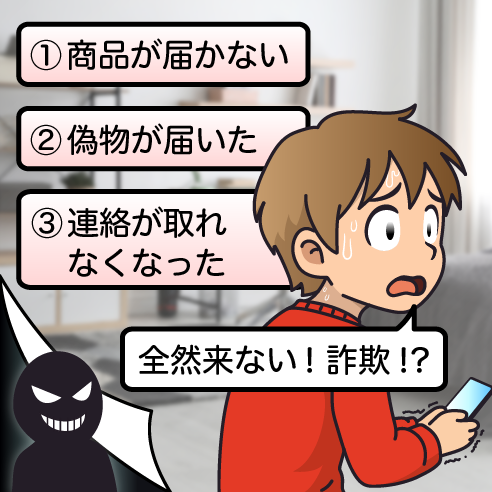 商品が届かず、連絡が取れなくなって初めて詐欺だと気付きます