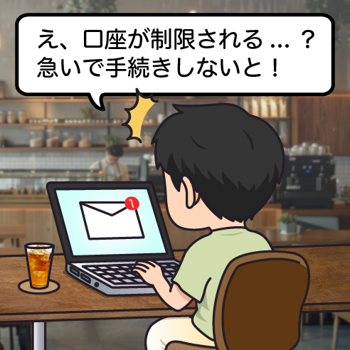 (文言例)至急にリンクを確認、口座の利用停止、利用制限、不正利用、犯罪が疑われてますなど
