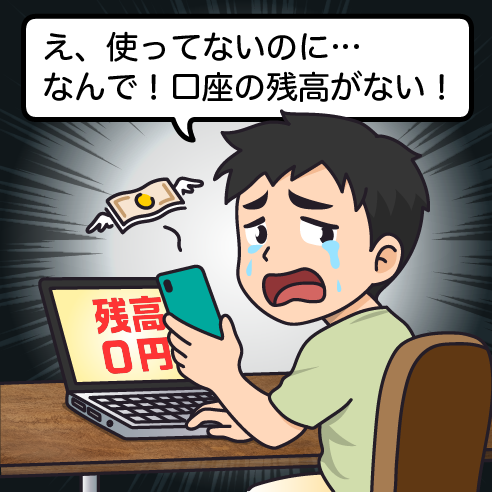 インターネットバンキングが不正に操作され、犯人が管理する口座に送金されることにより、被害が発生します。